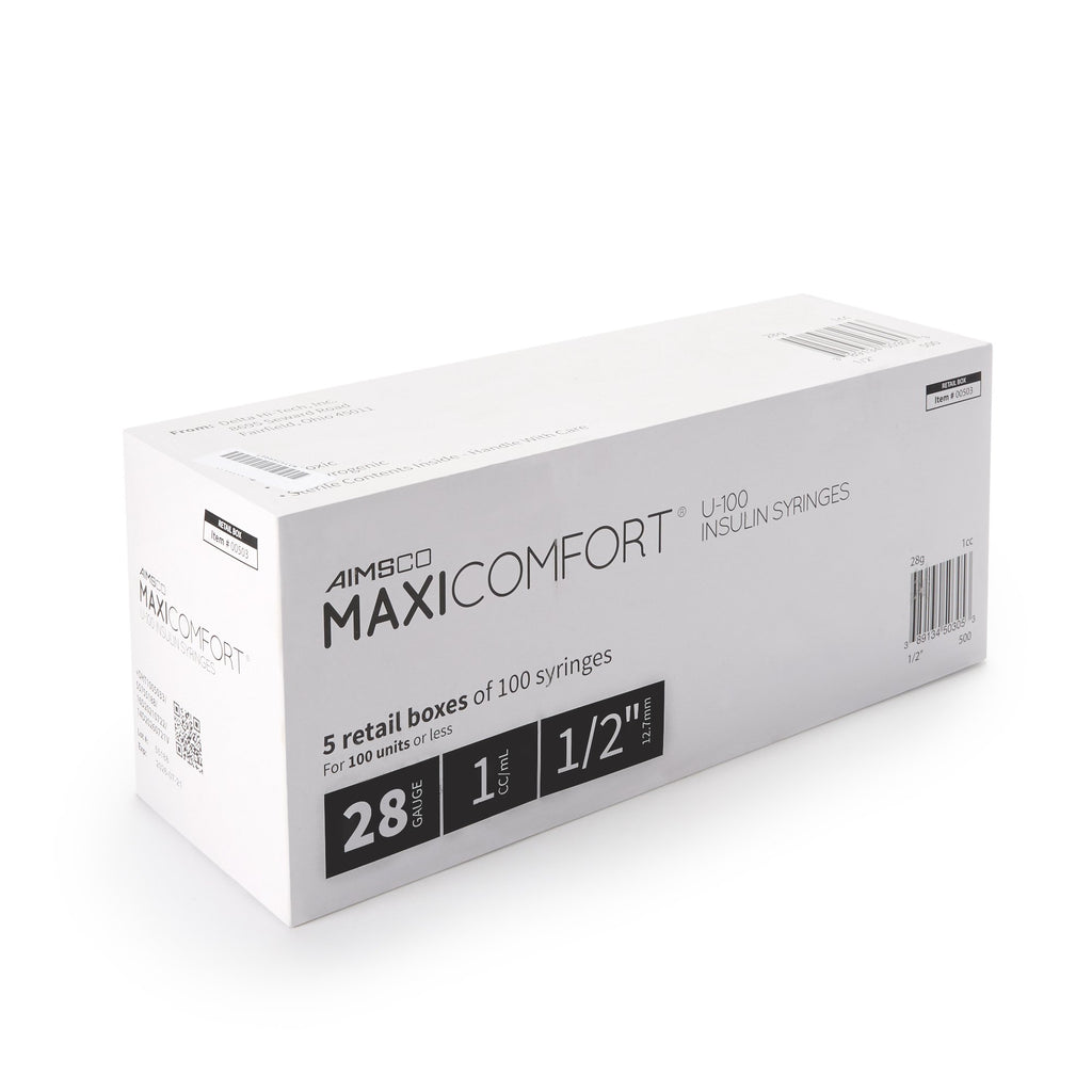 AIMSCO® Standard Insulin Syringe with Needle 1 mL 1/2 Inch 28 Gauge NonSafety Ultra Thin Wall (1182679_BX) 100/BX