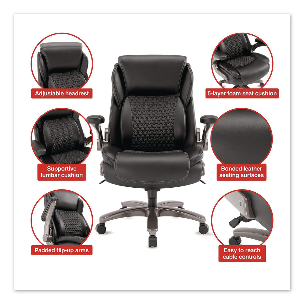 Alera® Leithen Bonded Leather Big and Tall Midback Chair, Supports 400 lbs,19.49" - 22.44" Seat Height, Black Seat/Back, Silver Base (ALELT42B49) Each