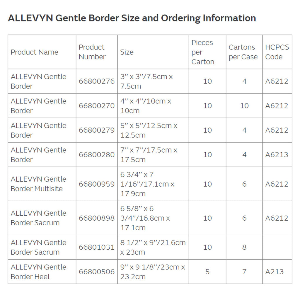 • Allevyn gentle dressings with borders maintain fluid balance to promote faster healing and reduce pain.
