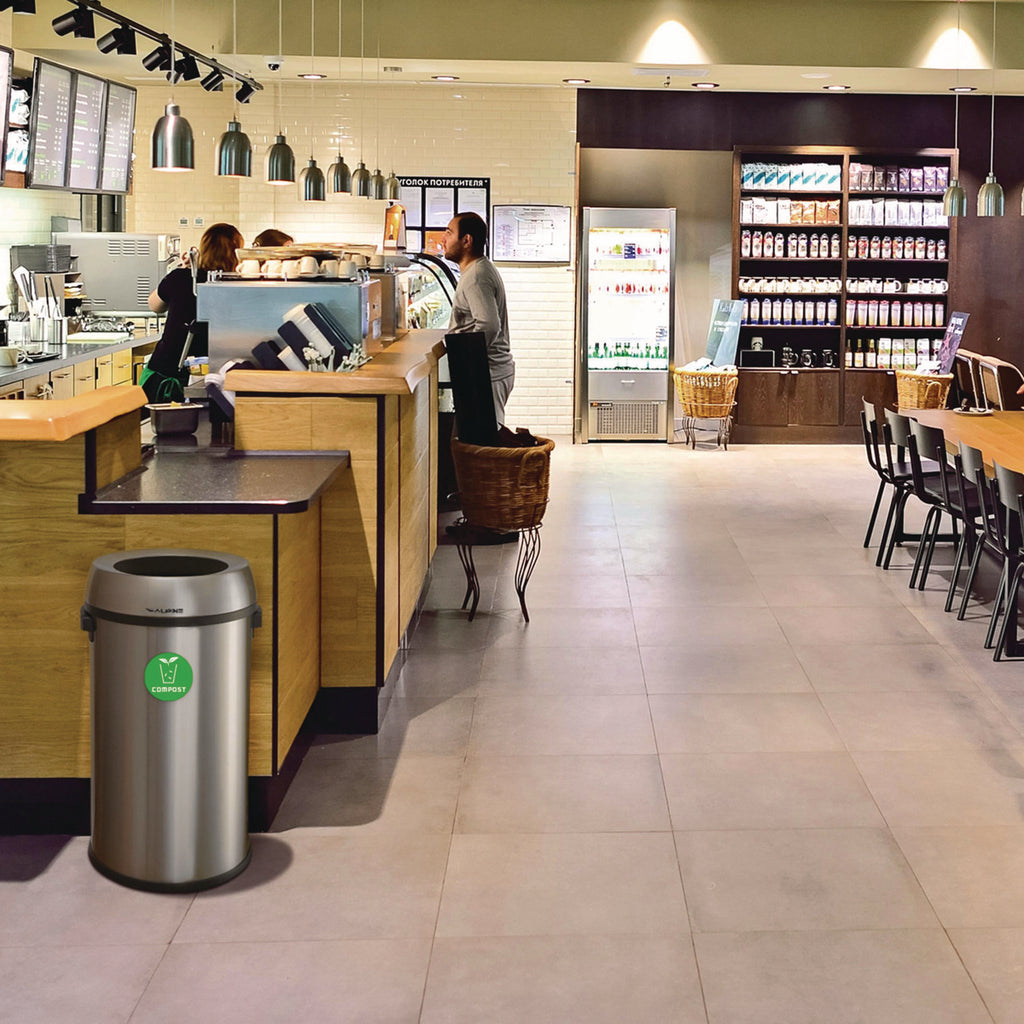 When equipping your business's interior with waste receptacles, you want to be reassured it will survive constant daily use and will aesthetically add to your environment. With our modern, 17 Gallon Stainless Steel Open Top Compost Can, you can be confident you're getting an everlasting product that will help maintain cleanliness in your facilities. To help accommodate a more significant amount of compost, the 17-gallon capacity can fulfill your foot traffic demands. Included with every purchase is a compost sticker that will identify its intended purpose and be able to handle daily wear and tear. The vibrant color of the compost sticker offers optimal visibility, assuring waste goes into the proper stream. In addition, the lid of the receptacle is created to display a seamless design that conceals trash bags but can efficiently be removed when needed. The large open top design of the lid will also allow precise disposal of all forms of waste. Our 17 Gallon Stainless Steel Open Top Compost Can, will allow you to streamline waste collection in your high-traffic area while adding a touch of modern appeal.