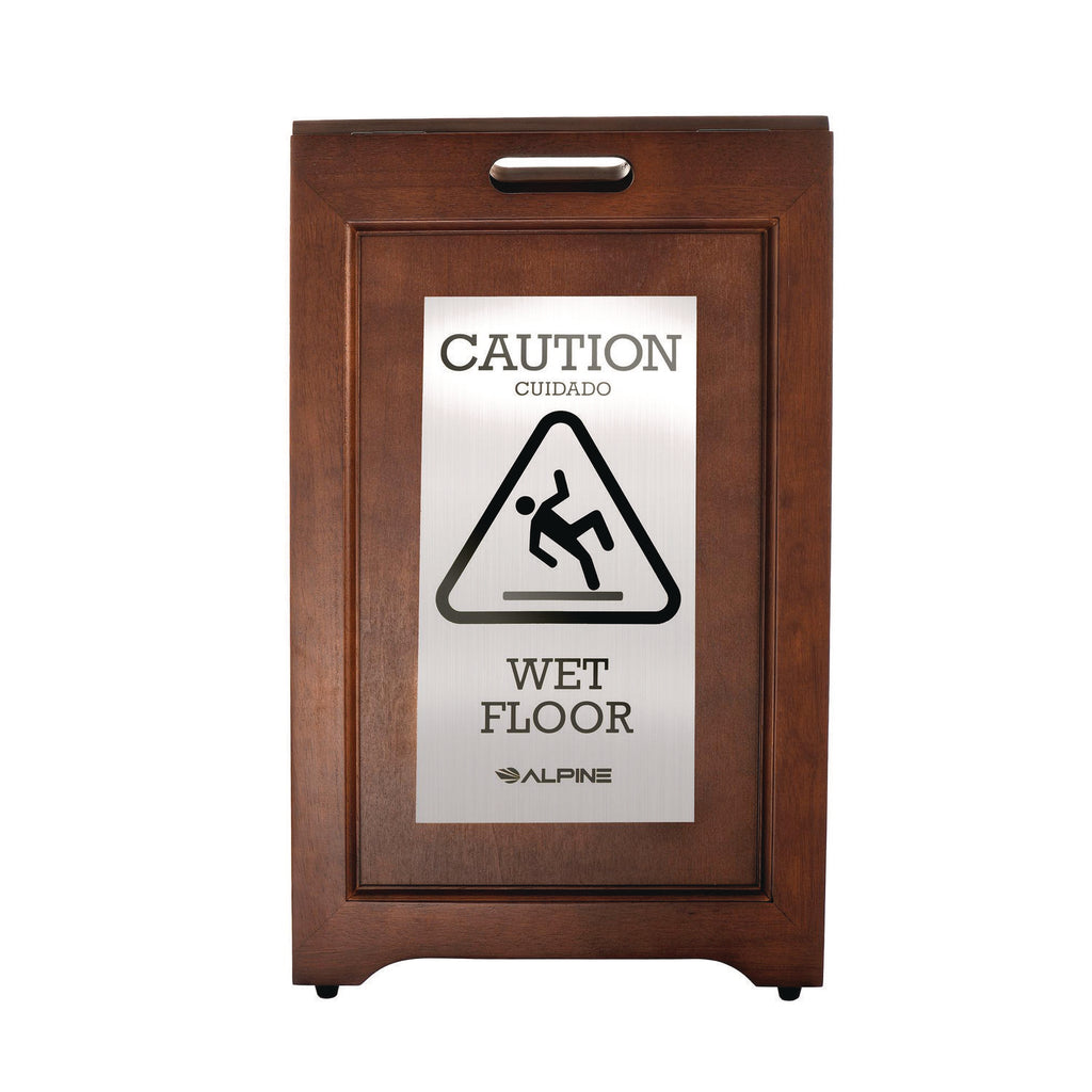 Introducing the Alpine Industries 2-Sided Wet Floor Sign-a sophisticated and stylish solution designed to not only keep customers safe from potential slips on freshly mopped floors but also to elevate the ambiance of high-end environments where traditional wet floor signs may detract from the aesthetic appeal. Crafted with meticulous attention to detail, this sign features a sleek hardwood finish accented by a metal plate, adding a touch of elegance to any setting while maintaining the highest standards of safety. But the benefits of our Wet Floor sign extend far beyond its aesthetic appeal. Constructed from durable materials, including hardwood and metal, this sign is built to withstand the rigors of any environment, ensuring long-lasting performance even in high-traffic areas. Whether it's in a luxurious hotel lobby, an upscale restaurant, or an exclusive boutique, our sign delivers both style and substance, providing peace of mind to customers and employees alike. But that's not all. We've designed our Wet Floor sign with convenience in mind. Featuring an integrated carry handle and a collapsible design, it can be easily transported and stored when not in use, making it ideal for use in busy commercial settings where space is at a premium. Hang it on a janitorial cart, tuck it away in a closet, or simply fold it up and stow it beneath a counter-the choice is yours. With its combination of style, durability, and convenience, the Alpine Industries 2-Sided Wet Floor Sign is the perfect choice for businesses that prioritize both safety and aesthetics. Invest in this classy solution today and ensure that your establishment maintains its impeccable reputation for years to come.