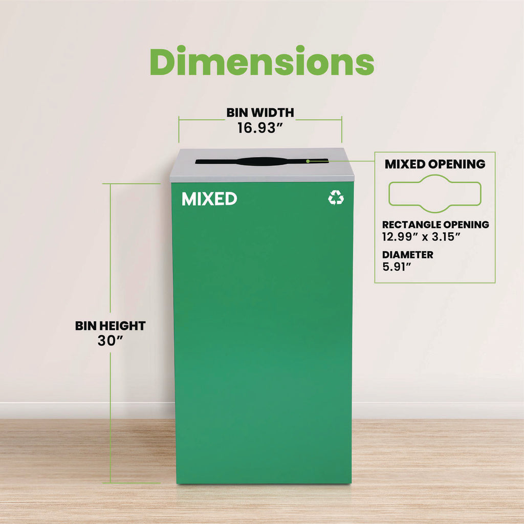 Package Includes (1) Green Mixed Recycling Can with Mixed Lid; (5) Stickers