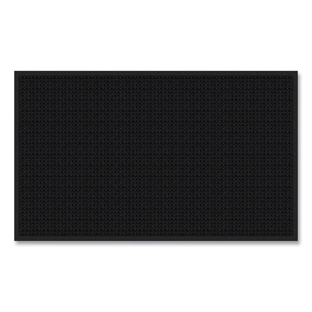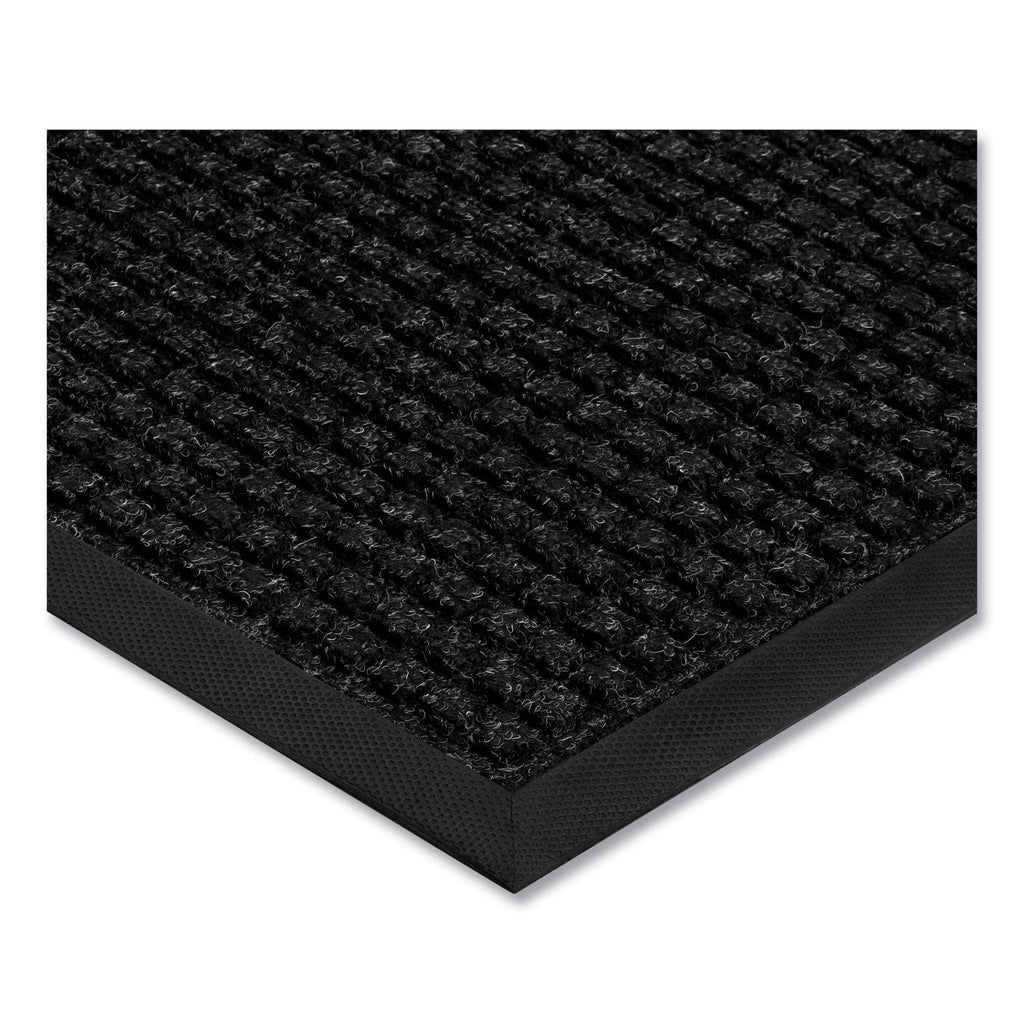 Classic commercial mat with a crush-resistant surface has been re-engineered with added weight for extra durability. Long-lasting, phthalate-free rubber backing and border keep moisture on the mat and away from indoor flooring. The polypropylene needlepunch carpeted surface is fade-resistant, holds up to 1.5 gallons of water per square yard, and dries quickly. Manufactured with no underside grippers to provide more area-to-surface contact with the floor. Weighing about 127 ounces per square yard, the mat is meant to stay in place. Ideal for use in interior or exterior high-traffic areas such as commercial buildings, hotels, restaurants, schools, businesses and homes. Easy to clean: simply shake, sweep, or hose off.