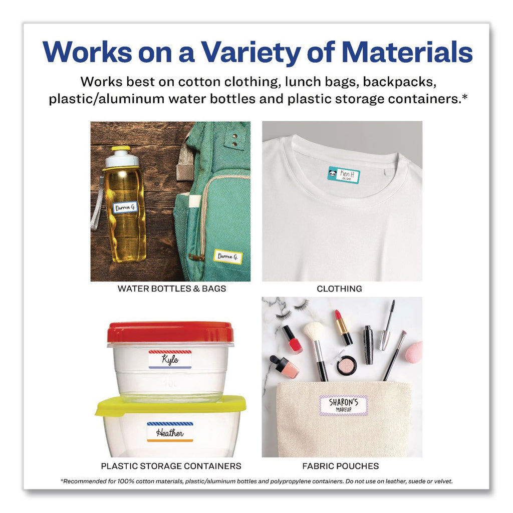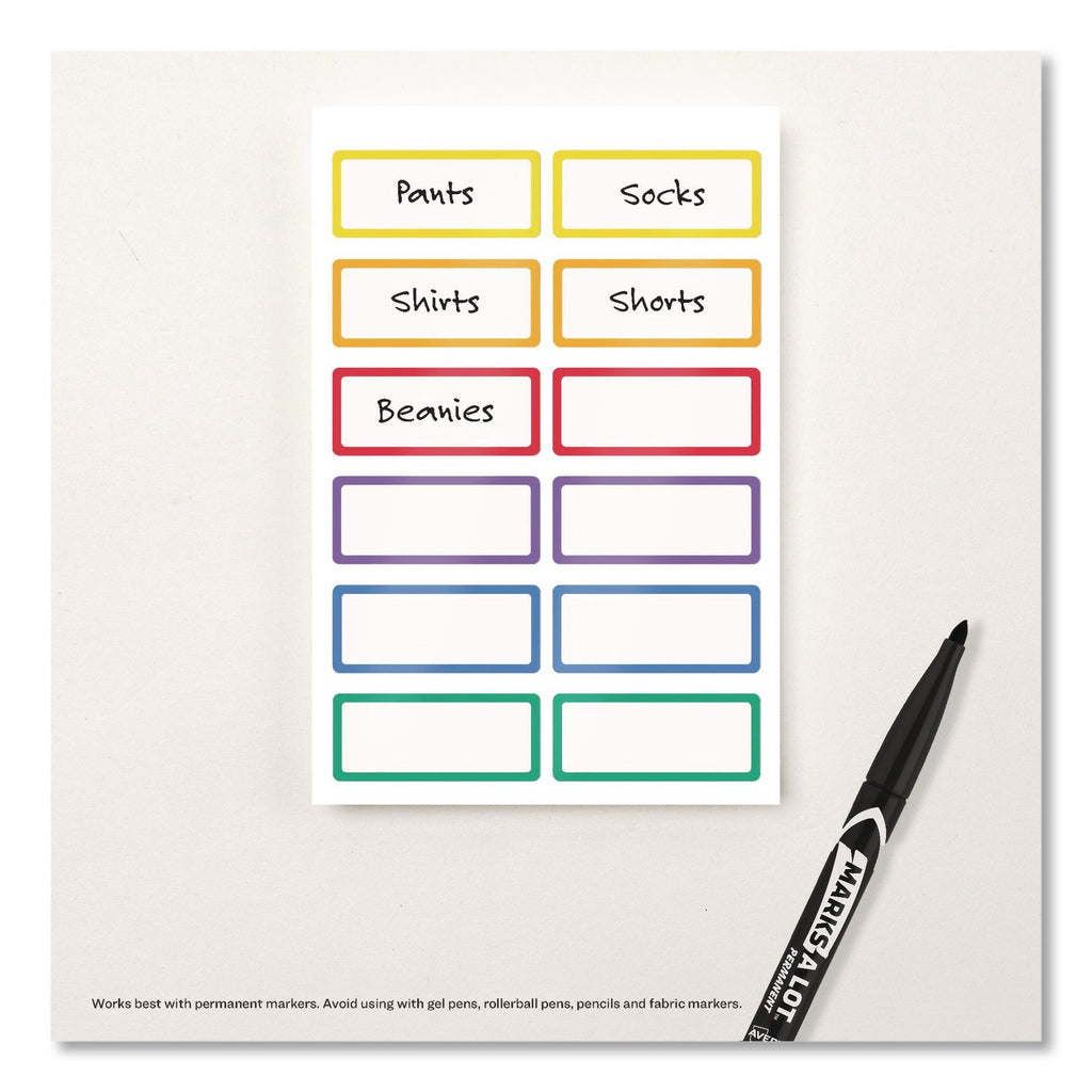 Avery® No-Iron Fabric Labels, Rainbow Border, Handwrite Only, 0.75 x 1.75, White, 12/Sheet, 2 Sheets/Pack (AVE40706) Pack of 24