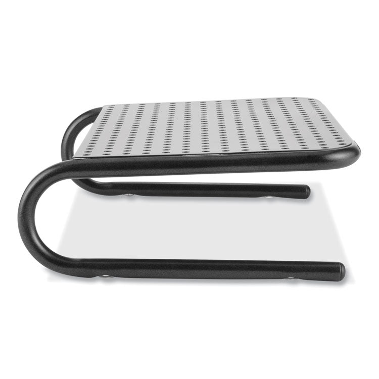 Raising your monitor or TV to a proper height is the key to achieving a comfortable and ergonomic viewing angle, and the Metal Art Jr Monitor Stand can help you optimize your monitor or TV placement. Increasing your monitor height as recommended by OSHA (Occupational Safety and Health Administration) with a Metal Art Jr Stand can help prevent possible neck and back fatigue and provide better ergonomic viewing. This stand features a unique design that organizes your workspace while providing valuable storage space underneath for your keyboard, laptop, or office supplies. The stand also has a vented platform surface for passive airflow to keep your devices cool. The sleek powder coated finish on surface helps prevent scratches and scrapes. Supports up to 40 lbs.