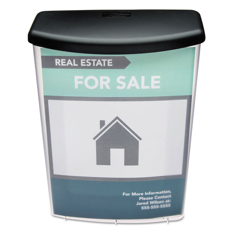 This sleek, break-resistant outdoor box with a clear, visible front holds letter, legal and A4 documents. Thoughtful design and included mounting hardware provide a variety of mounting options to wooden posts, metal and plastic poles and various wall surfaces. Weatherproof and fade-resistant with a black self-closing lid and stay-closed tabs. Create your own sell sheet or informational flyer with deflecto®'s free online SignCreator™ software. SignCreator™ includes hundreds of templates you can customize to create professional materials and print on your own printer.