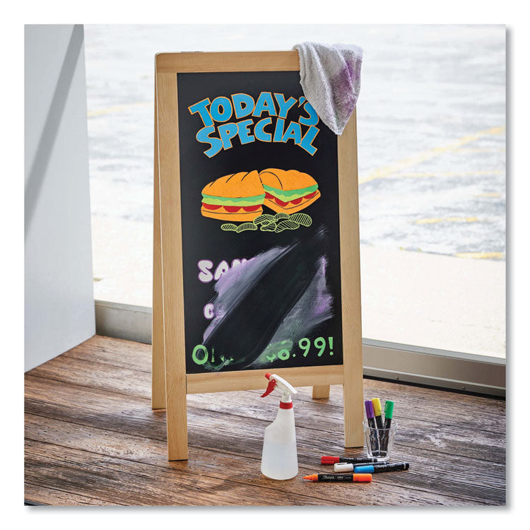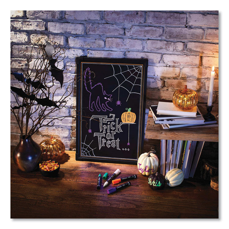 Make your writing or drawing stand out with Sharpie® Chalk Wet Erase Markers. These brilliant chalkboard markers mark brightly on blackboards, light boards, white boards, glass, and more. For convenient cleanup, these markers wipe off easily with a damp cloth. Depend on these markers for eye-catching displays or writing in the classroom, your business, or home.