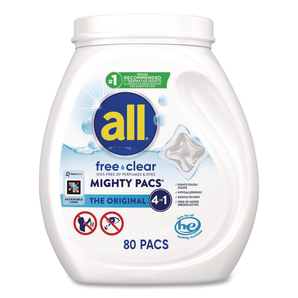 all® MIGHTY PACS Free Clear HE Laundry Detergent, 80 Pods/Tub, 4 Tubs/Carton (DIA47508) Case of 4