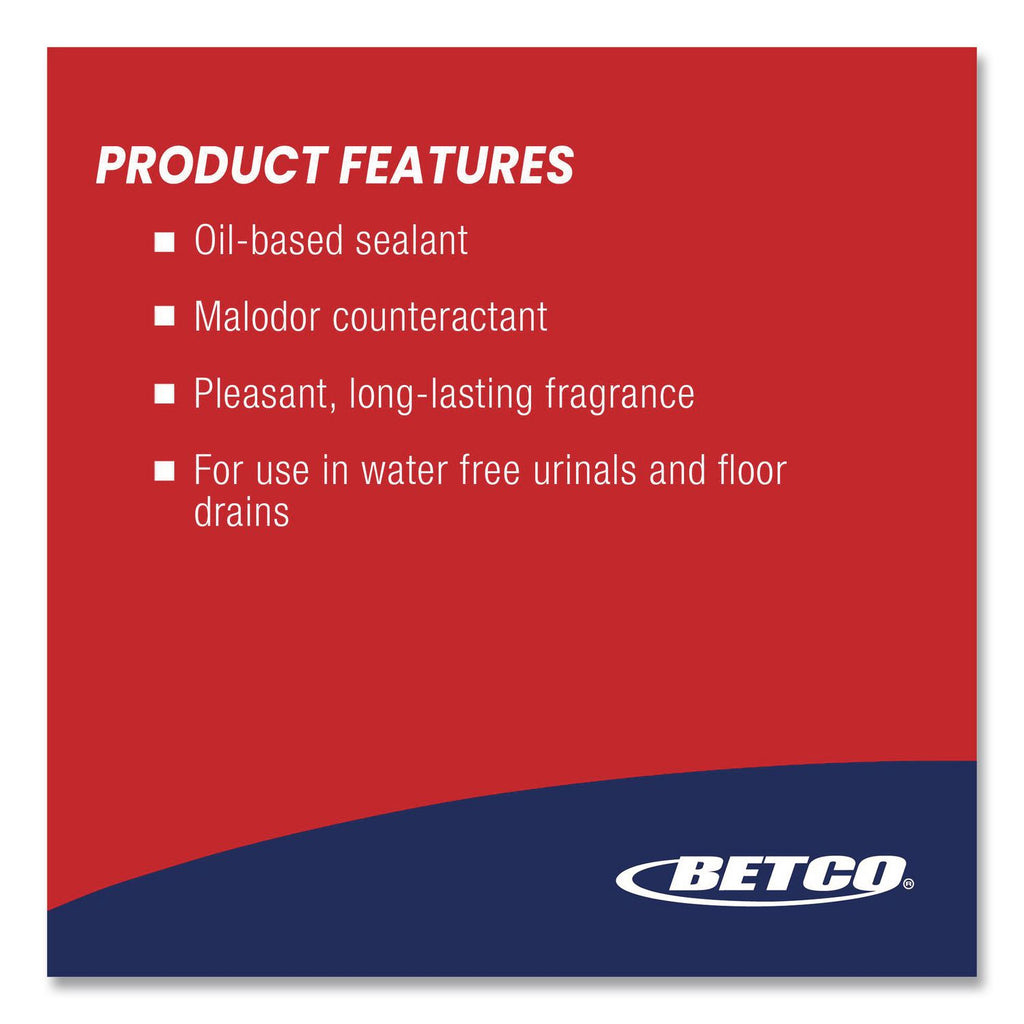 Barrier Fluid is an oil-based liquid designed to float on top of fluid in a water-free urinal cartridge, a flushing urinal well or in a floor drain. This liquid puts a physical barrier between a liquid and the atmosphere, immediately sealing off bad odors at the source.