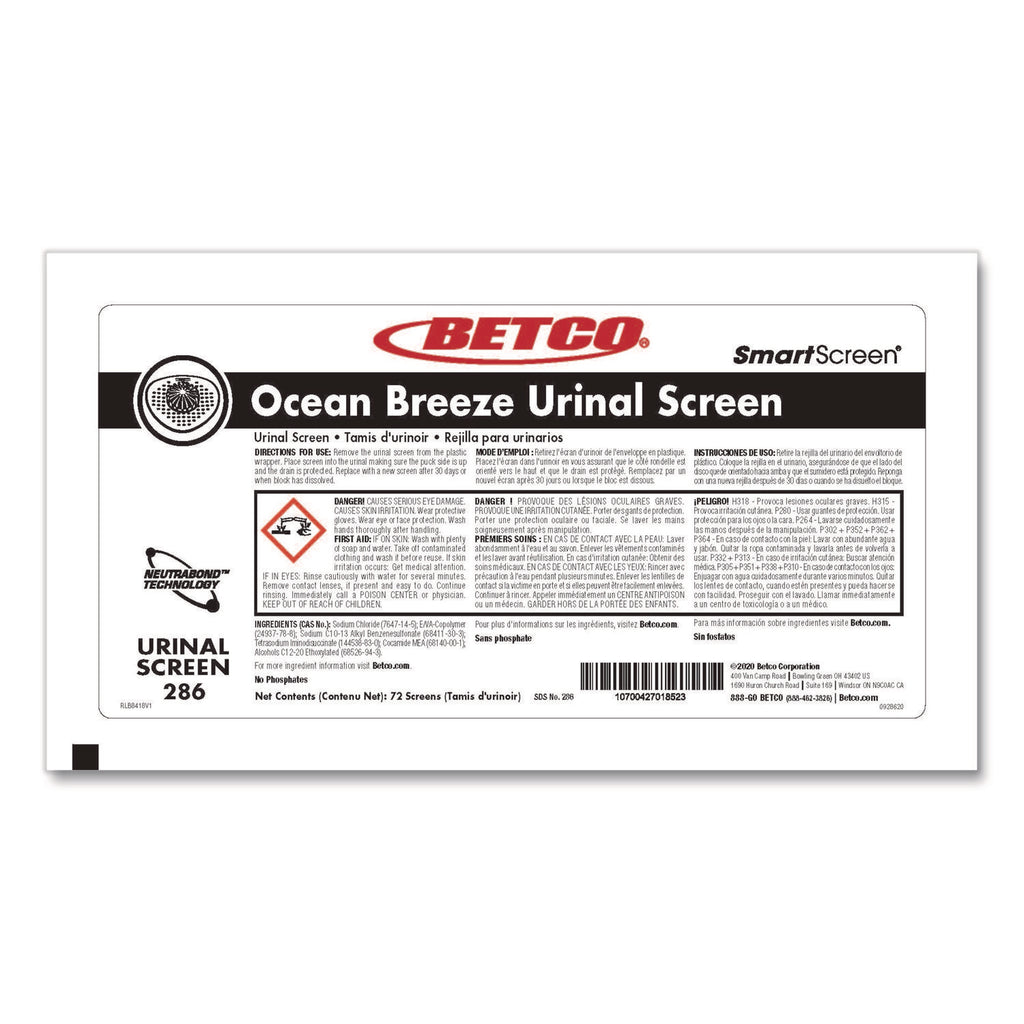 Betco SmartSCREEN Urinal Screen, Ocean Blue Scent, Blue, 1 lb, 72/Carton (BET2867200) Case of 72