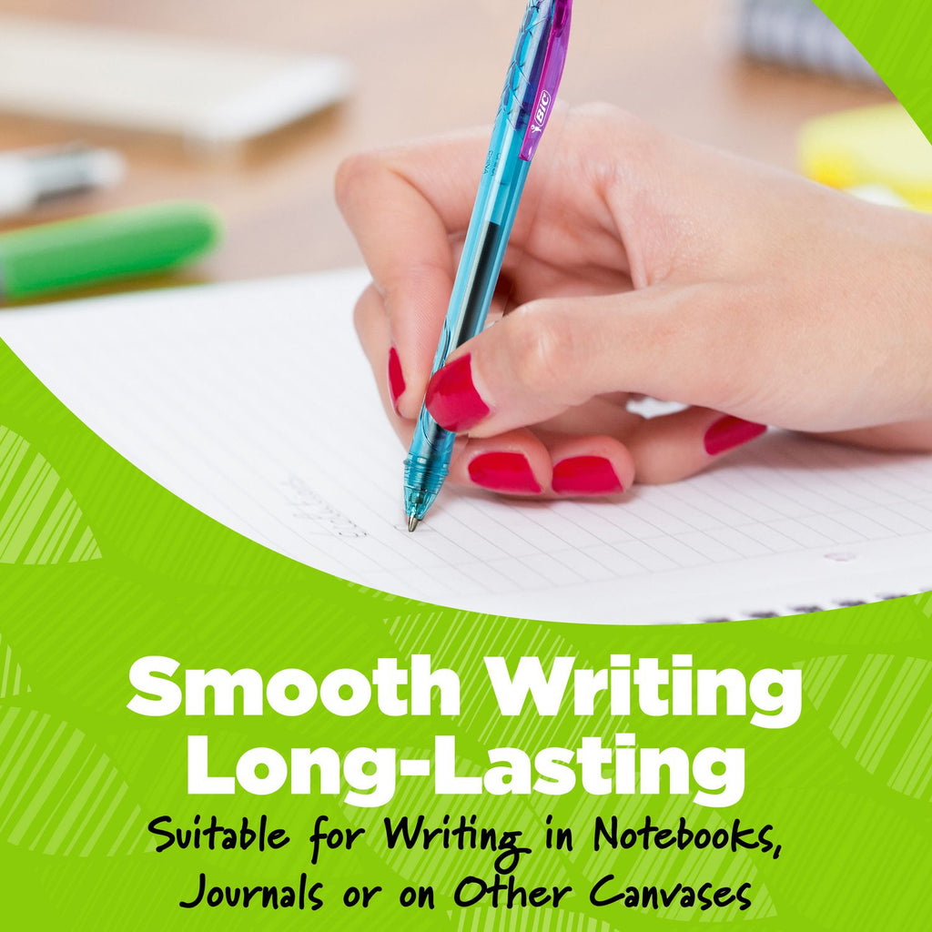Help write our planet's future with the long-lasting BIC ECOlutions ocean-bound plastic retractable gel pen. This gel pen is made from 78% ocean-bound recycled plastic, excluding the ink cartridge, and the paperboard packaging is made from 100% recycled content and is recyclable. All the materials used are collected within 31 miles of a shore or waterway that leads to the ocean, preventing them from entering the ocean. With a medium 1 mm point, this is the perfect BIC pen for everyday writing. The smooth writing ink system delivers hours of effortless writing. The classic, slender, semi-clear barrel makes it easy to check ink levels. This pen is a smart choice for righties and lefties, as the vibrant ink dries quickly to prevent smearing. Designed for convenience, this retractable pen lets you start writing with just one click. Pick up the BIC ECOlutions ocean-bound plastic retractable gel pen for a high-quality, affordable writing utensil you can trust.