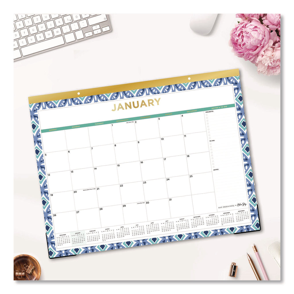 Blue Sky® Tile Monthly Desk Pad Calendar, Geometric Artwork, 22 x 17, White/Blue/Green Sheets, 12-Month (Jan to Dec): 2026 (BLS133694) Each