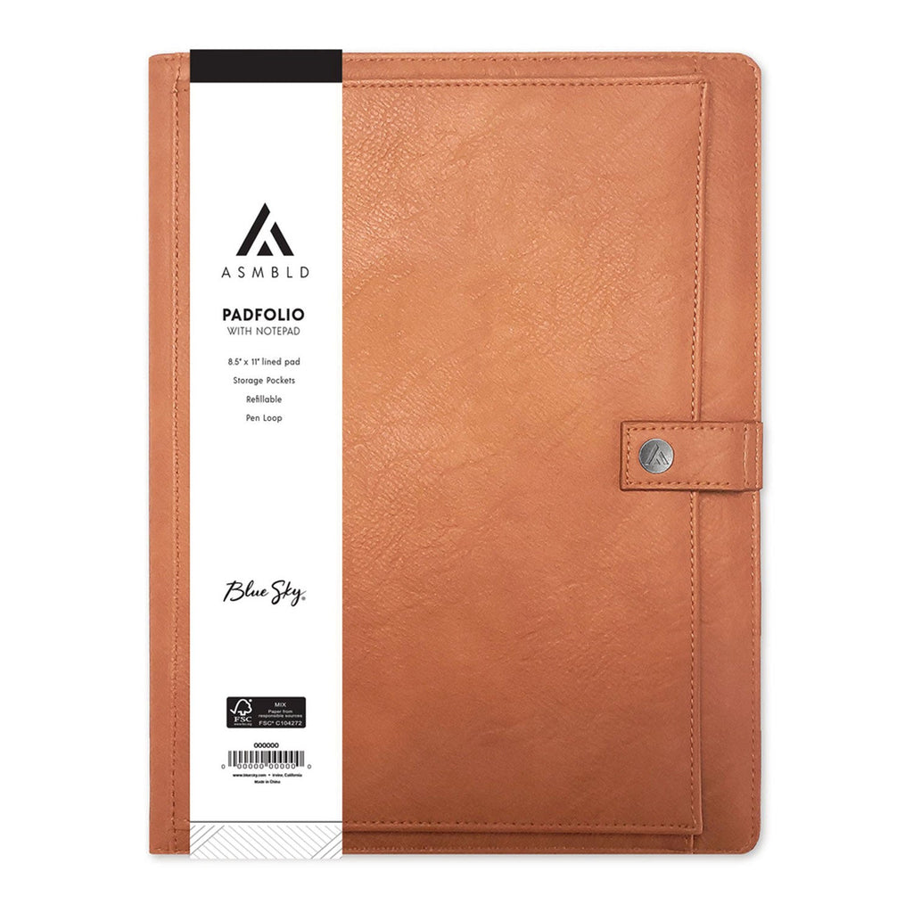 Blue Sky® ASMBLD Professional Faux Leather Padfolio, 8.5 x 11 Pad, 9.45 x 12.13, Snap Closure, Tan (BLS150537) Each