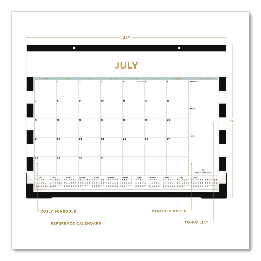 Day Designer Rugby Stripe Academic Year Desk Pad Calendar, 22 x 17, White/Black Sheets, 12-Month (July to June): 2024 to 2025 (BLS138443A25) Each