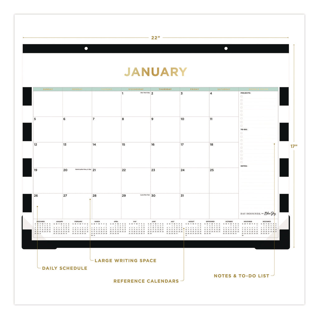 Blue Sky® Day Designer Rugby Stripe Desk Pad Calendar, 22 x 17, White/Black Sheets, 12-Month (Jan to Dec): 2025 (BLS14389525) Each