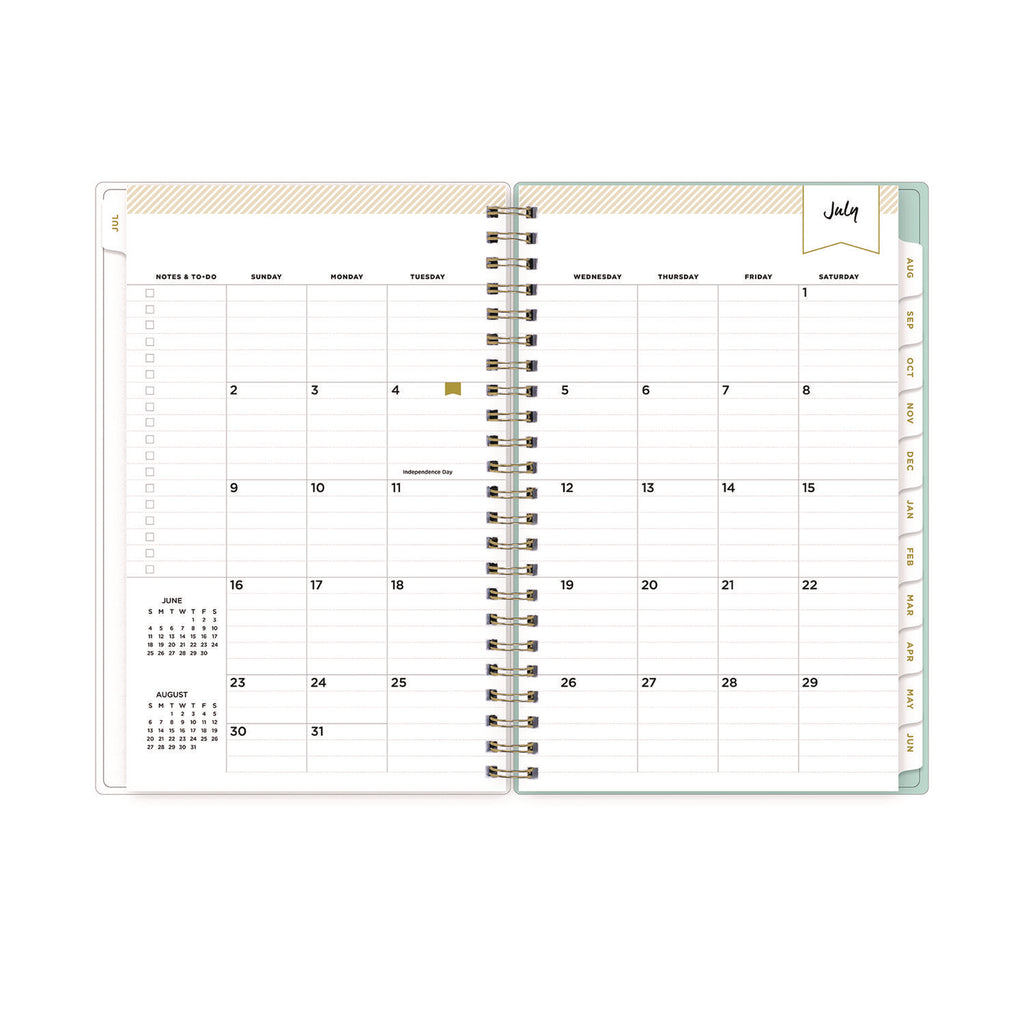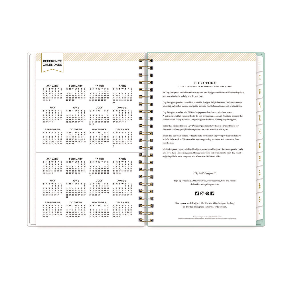 Find the balance and focus needed to increase your productivity throughout the school year. Elegant planner simplifies planning and organization with a four-step guide to success and everything you need to keep your days, weeks and months on track, while its Secret Garden Mint floral artwork features a sylvan design and a softer pastel color palette to help you maintain a tranquil outlook. The tabbed monthly section features two-page spreads with ruled blocks, past/future-month reference blocks and a checklist on the left for Notes & To-Dos. The weekly section also features two-page spreads, but with a twist. Monday through Friday features a two-column layout with open appointment scheduling on the left and a checklist for To-Dos on the right. Saturday and Sunday feature a simplified system to accommodate special events and general notes. In the back of the book, a robust ruled notes section provides extra space for lists, event-planning and more. Thick, premium paper delivers smooth writing performance with excellent ink-bleed resistance, and the book's twin-wire binding offers easy page-turning while securely keeping the cover and contents in place.