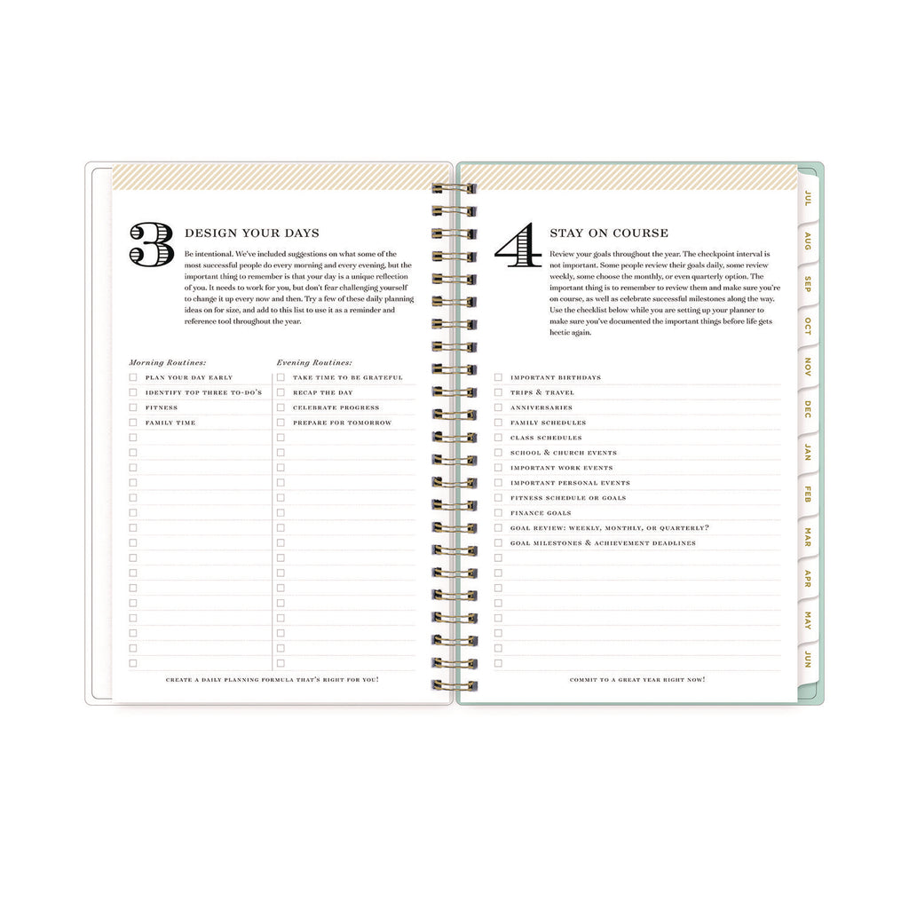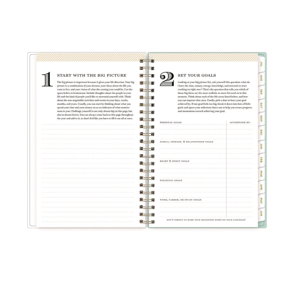 Separate Sections (2) Bonus Past Monthly Spreads (May-June); Two-Year Reference Calendar; Four-Step Planning and Goal Setting Pages; Notes Pages; Holidays
