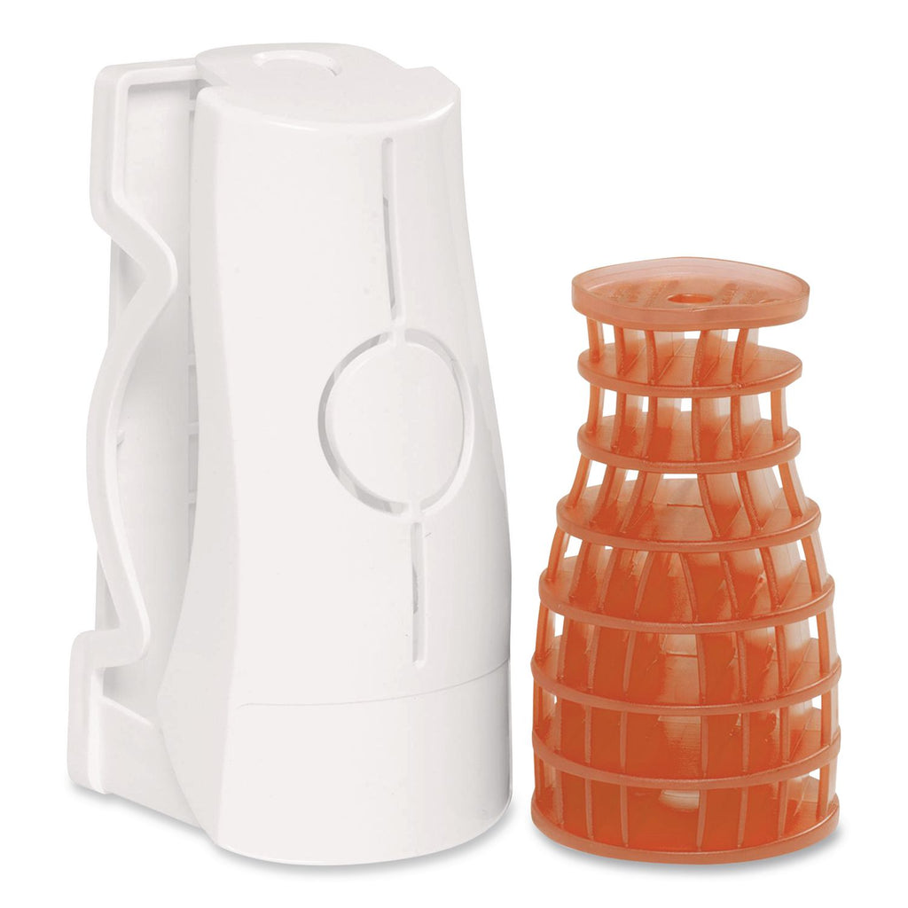 Solid passive air freshener refill; no batteries required. Provides 30 days of consistent fragrance release. Appealing aroma freshens air and masks unpleasant odors. Made with natural oils. Does not contain propellants or acetone and refill cartridge is recyclable, making it a more sustainable option. Ideal for use in restrooms, breakrooms and reception areas.
