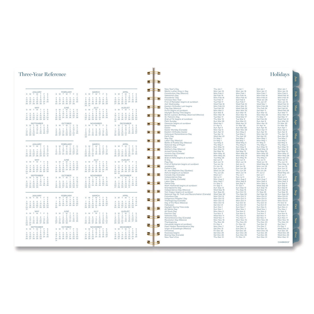 Add a pop of enchanting floral style to your year when you use the Cambridge Midnight Garden Weekly Monthly Planner. The bold florals stand out against the dark background and feature pops of gold accents. Start fresh each week with open daily sections and a small QuickNotes® area to help you stay on track all year long. The tabbed monthly pages help you see your big picture plans in an instant. Who doesn't love extras? Special pages include a double-sided poly pocket, three-year reference calendar, holiday list and others. The durable poly cover helps the planner stand up to wear and tear no matter where your day takes you. Our twin wire binding helps keep your pages secure and won't snag on your bag or clothing.