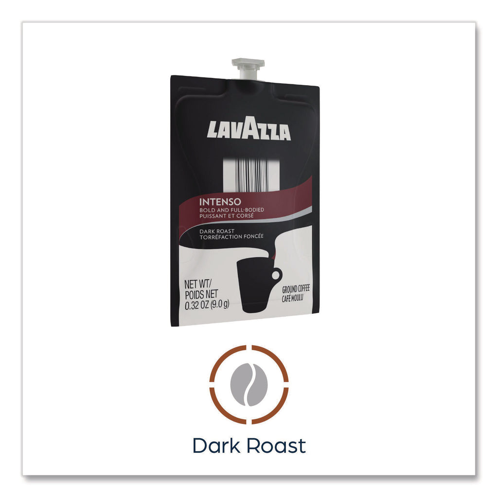 The Lavazza Intenso Dark Roast Coffee features a bold flavor with perfectly balanced smoky and caramelized flavor notes. Our dark roasting process enhances the body while finishing the taste experience with a hint of chocolate flavor notes. This traditional blend of Arabica and Robusta coffees, mainly from South-East Asia and South America, delivers a uniquely Italian coffee aroma. Our brewing process, where nothing touches the ingredients other than hot water, ensures your drink does not taste like previous brews. Compatible with FLAVIA® single-serve brewers. For single-serve sustainability, innovative pouches are 100 percent recyclable through Terracycle.