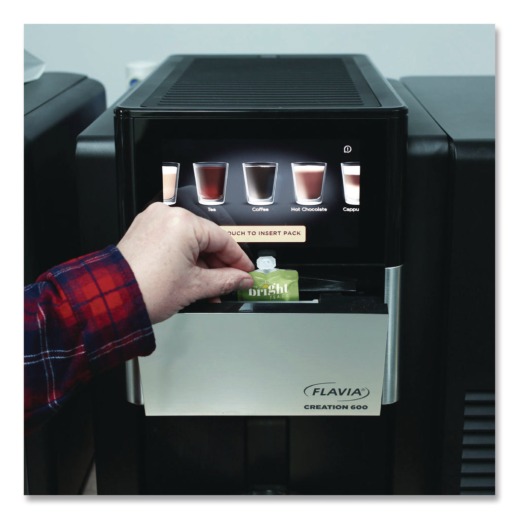 Select Green is smooth and creamy with soft golden cup color. Light-bodied tea offers a vegetative and nutty aroma and taste with balanced bite and sweetness. It features one of the top 10 most famous Chinese teas - a spring-harvested Mao Feng. During the spring, the buds are plucked just at the beginning of the gentle rains when the buds have just begun to swell and are still tender. Tea comes in convenient Freshpacks. Each Freshpack contains the exact amount to brew a perfect single cup of tea. Freshpacks are used in Flavia Creation 150, Creation 200 and Creation 500 (all sold separately). Simply slip the pouch into the pack door, and the machine pierces the pack seal to create your delicious beverage. For single-serve sustainability, innovative pouches are 100 percent recyclable through Terracycle.