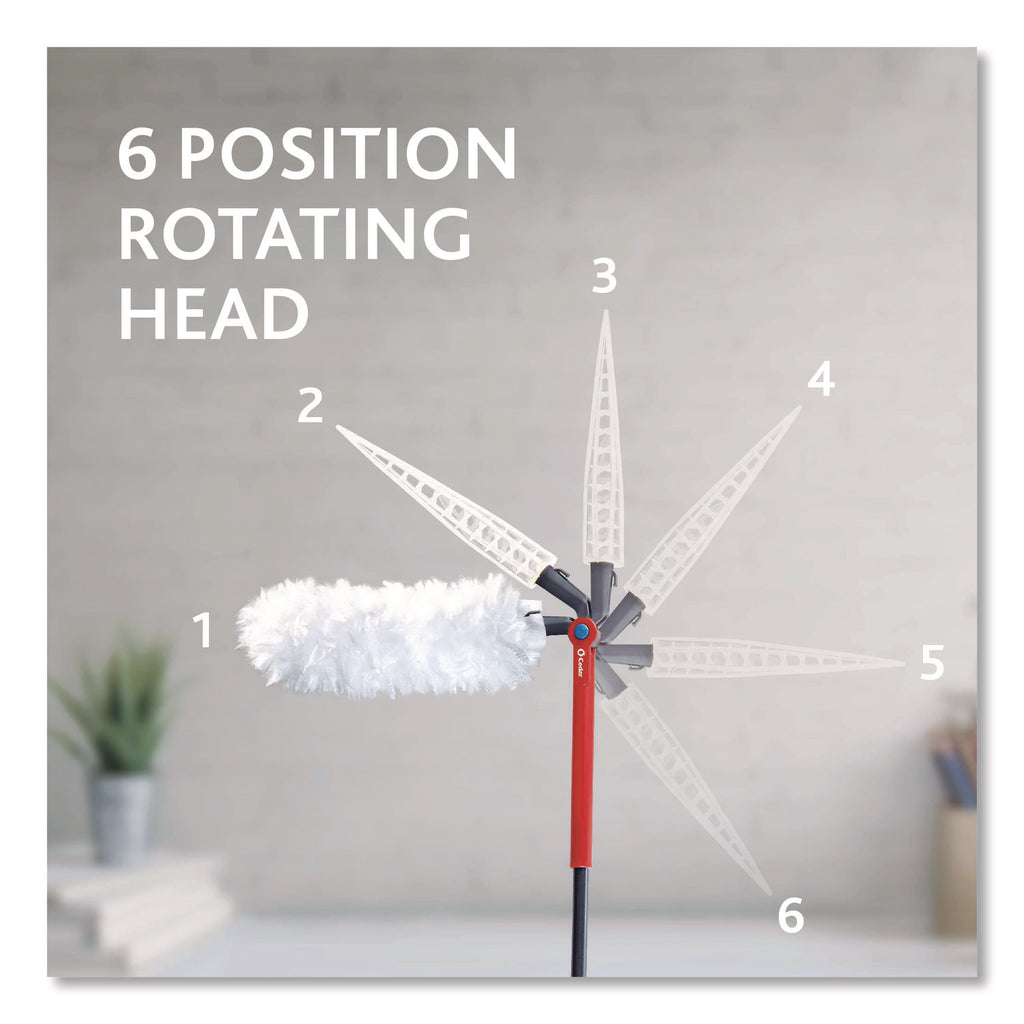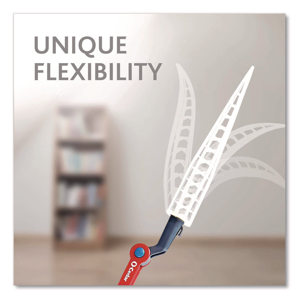 Trap dust in even the most hard-to-reach places with the O-Cedar Flex & Catch Heavy Duty Dusting Kit. This ultra-flexible duster features a patented head that contours around objects, trapping up to three times more dust than traditional feather dusters. The handle extends three feet, helping you reach high places, and the swivel head locks into six different positions so you can customize your cleaning angle. The Flex & Catch kit comes with three disposable refills, featuring cleaning fibers made from recycled materials. Plus the convenient hook helps keep the refill in place–just loop the refill onto the hook and give it a little tug to keep it secure while dusting. When you're finished dusting, it folds down for easy storage.