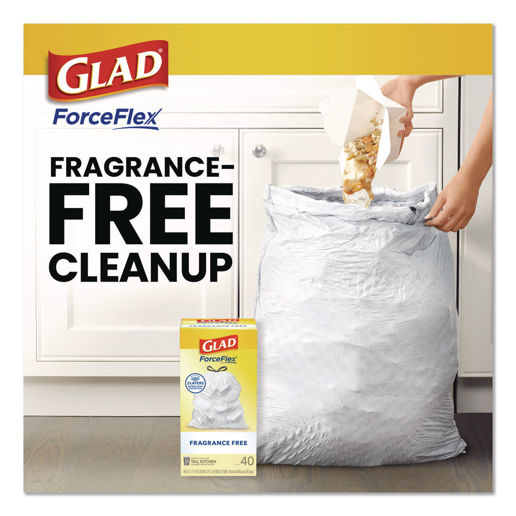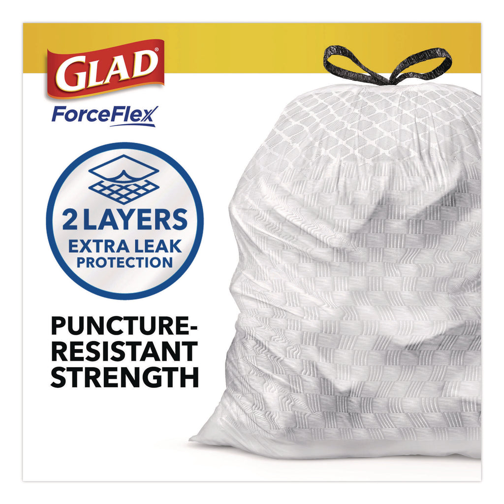 Glad® ForceFlex Kitchen Drawstring Trash Bags, Drawstring, 13 gal, Unscented, 23.47 x 25.38, White, 110 Bags/Box, 3 Boxes/Carton (CLO22541CT) Case of 330