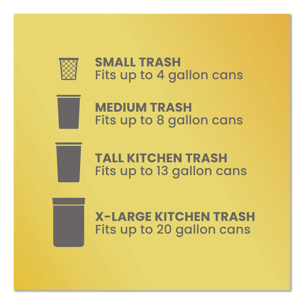 Fight nasty kitchen odors with Glad® trash bags. Glad® Kitchen Drawstring Trash Bags are designed with ForceFlex technology to give extra flex as it expands around sharp edges and heavy loads, so you can pack it in while resisting tears, rips and punctures. Keeps your kitchen smelling pleasantly fresh with long lasting odor control. Let the stretchable strength of Glad® handle all the messes our busy daily life can throw at it and then some. With double-sided seals and a reinforced bottom, these bags are designed with RipGuard® and LeakGuard® technology to prevent seepage of liquids and keep trash contained. The durable Grips-The-Can Drawstring ensures a tight grip on the trash can to keep it in place. Take the trash to the curb with no fear of leaks and tears, and no frustration. Keep your kitchen smelling clean with the stretchable strength of Glad®. Ideal for use in offices, schools, daycare centers, restaurants, hotels and other commercial facilities.