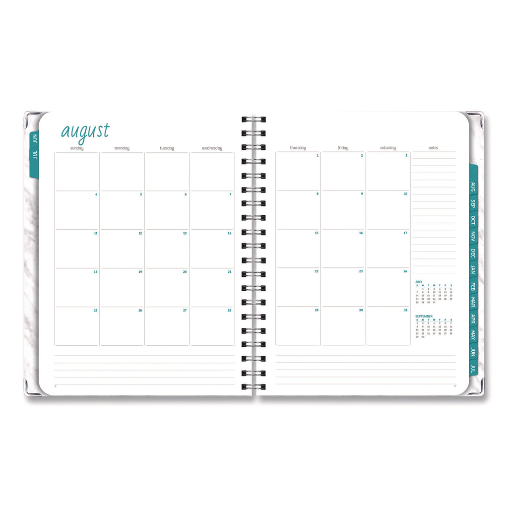Organize your life throughout the school year with the Marble Academic Year Weekly/Monthly Planner. Flexible, Monday through Sunday weekly spreads feature a priorities checklist as well as ruled space for daily appointments, tasks, takeaways and more. Tabbed monthly spreads feature a standard grid design with generously sized daily blocks and a separate notes column. Robust ruled notes section in the back of the book accommodates anything that doesn't quite fit into any one week, any one month. Attractive and understated Marble design cover and strong wire-O binding provide a professional look.
