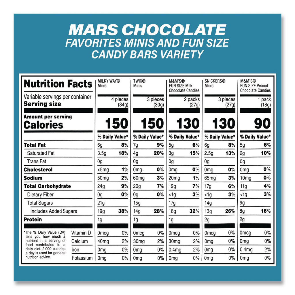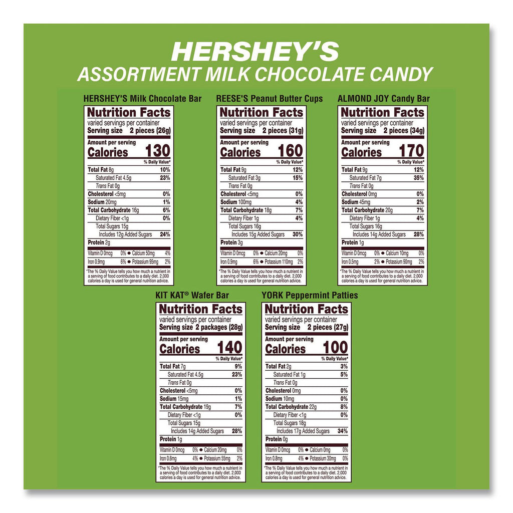 Flavor Almond Joy®; Kit Kat®; M&M®'s; Milky Way®; Peanut M&Ms®; Reese's® Peanut Butter Cups; Snickers®; TWIX®; York® Peppermint Patties