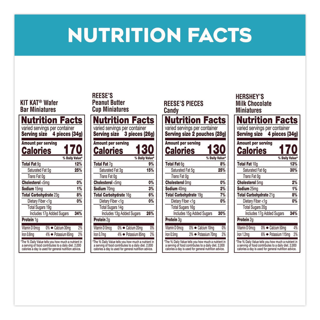 Flavor Hershey®'s Milk Chocolate Bars; Kit Kat® Milk Chocolates; Reese's® Peanut Butter Cups Miniatures; Reese's® Pieces