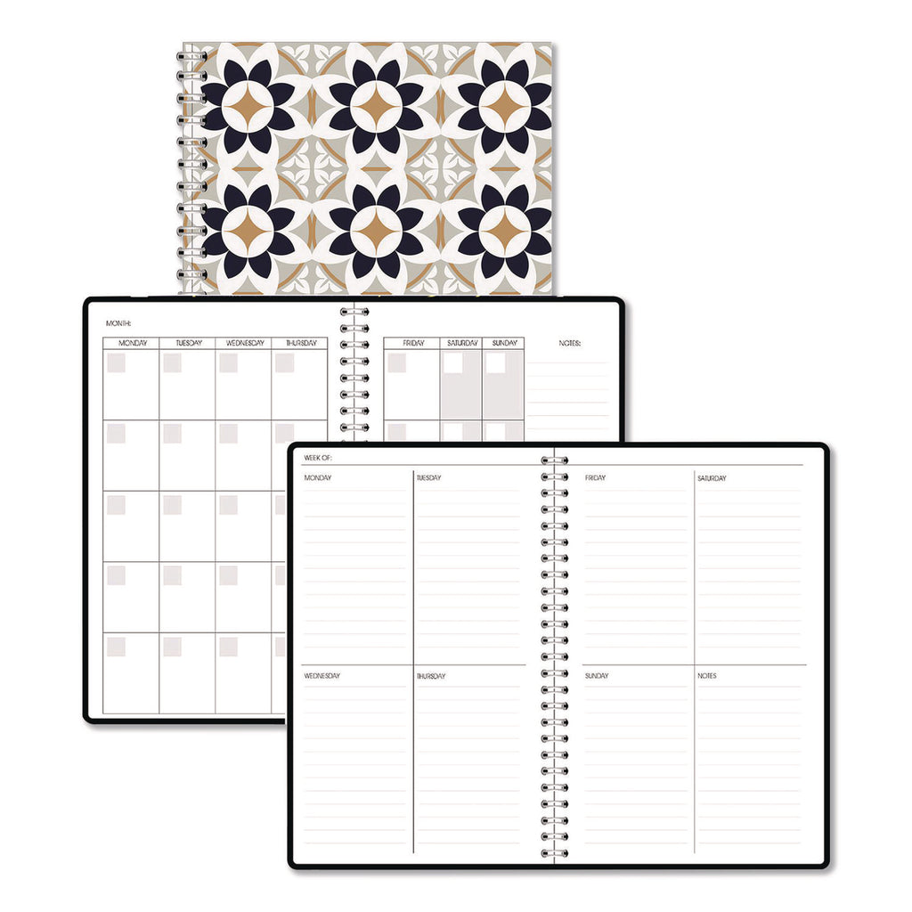 House of Doolittle™ Recycled Non-Dated Monthly/Weekly Planner, Flower Tiles, Tan/Black/White Cover, Undated (HOD212145) Each