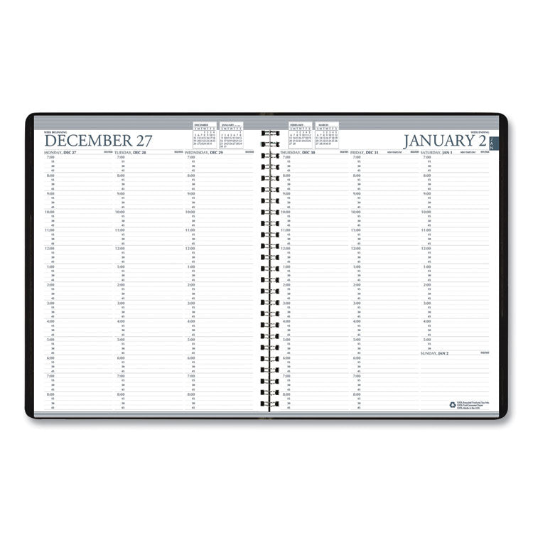 House of Doolittle™ Recycled Professional Weekly Planner, 15-Minute Appts, 11 x 8.5, Black Wirebound Soft Cover, 24-Month: Jan 2026 to Dec 2027 (HOD272002) Each