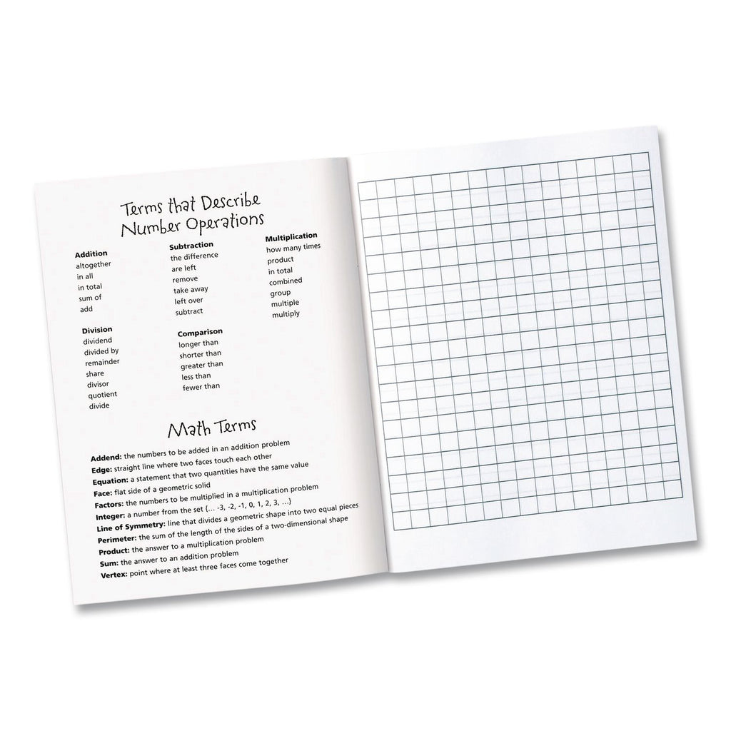 A great tool for student to organize their schoolwork. 64 pages for students to record their math answers and show their work. Each two-page spread features line-ruled pages on the left and graph paper on the right. The inside front and back covers define math terms and provide tips on solving problems.