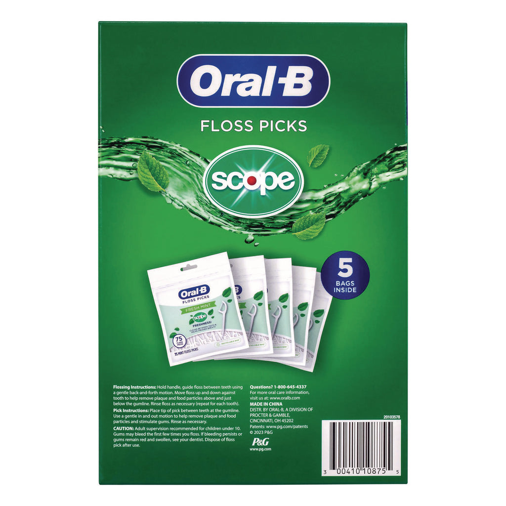 Oral-B® Burst of Scope Floss Picks, Fresh Mint, 75 Picks/Bag, 5 Bags/Carton (GRR22002395) Case of 375