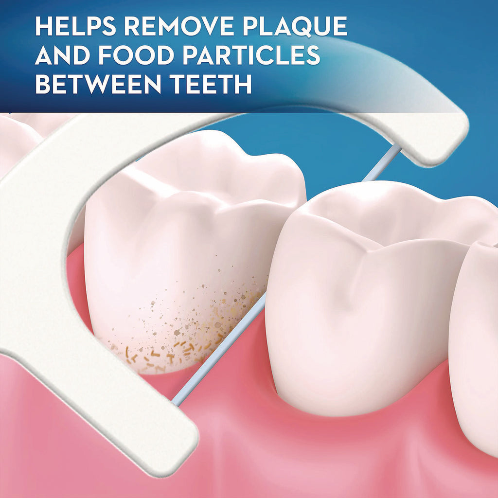 Flossing made easy with a burst of Scope! Oral-B Floss Picks with Scope clean between teeth and help freshen breath. Flossing is one of the most important things you can do for the health of your teeth and dentists recommend flossing after every meal. There aren't too many people that want to bring a roll of floss with them everywhere they go, though, and that is where Oral-B floss picks come in. They are easy to take on the go and taste great too. Satisfaction guaranteed, or your money back. Floss for a healthy mouth-the refreshing burst of Scope freshness will leave your mouth feeling fresh and clean. Oral-B floss picks help remove plaque which reduces the chances of tartar build up, tooth decay and prevent gingivitis as part of a complete dental plan. Daily flossing not only keeps your teeth and gums healthy, but it helps prevent bad breath. Small particles of food get stuck between your teeth and around your gums, which contributes to bad breath. Regular flossing helps remove those small particles, leaving your breath minty fresh.
