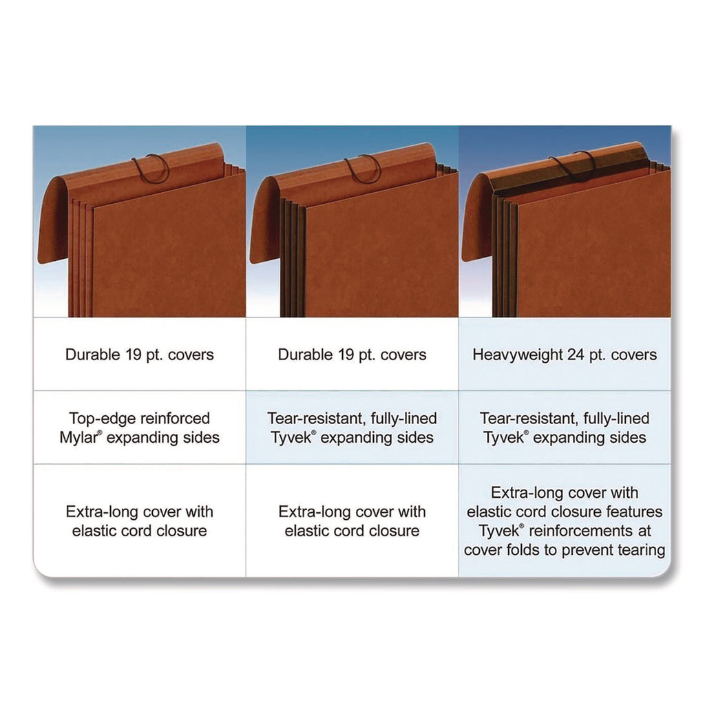 Quickly and easily sort and store important documents with the Heavy-Duty Expanding Wallet from Pendaflex®. Sized for use with standard file folders, storage and transport are made easy thanks to this extra-wide wallet's full flap and secure elastic closure. Constructed of extra-thick, tear-resistant redrope with Tyvek® reinforced gussets for extra strength at stress points, this durable wallet is built to last.