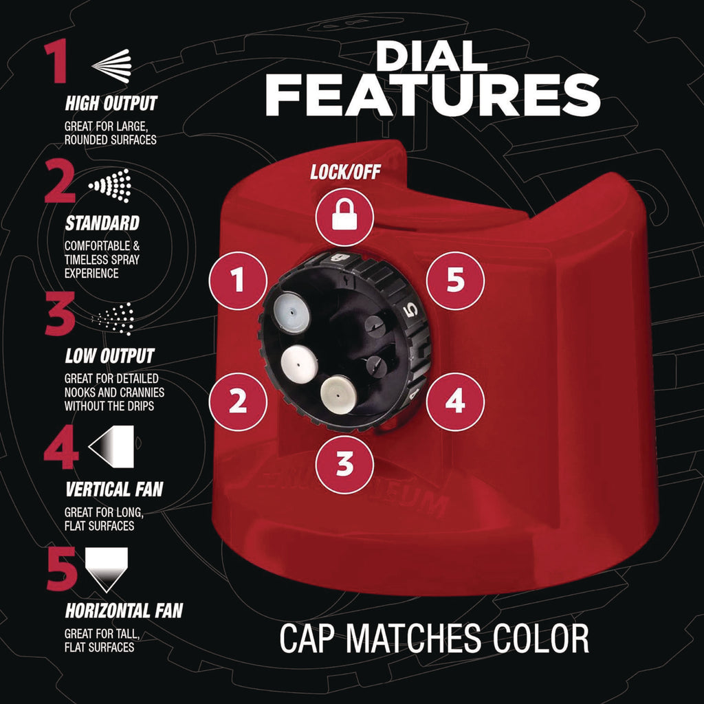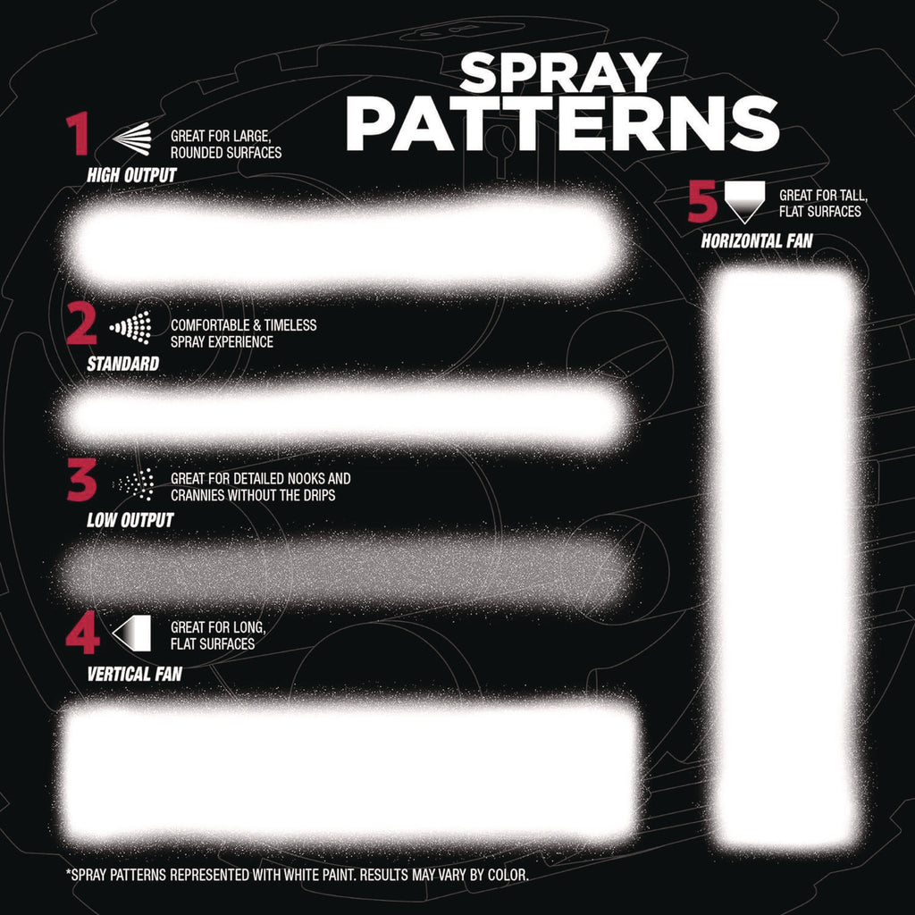 Rust-Oleum Stops Rust Custom Spray 5-in-1 allows you to choose between five different spray patterns for ultimate control and confidence over your next project. The advanced Stops Rust formula provides 30% greater corrosion resistance and color retention compared to original matching Stops Rust colors with standard tip. Ideal for ferrous, nonferrous metal and wood surfaces. Not for use on galvanized metal.