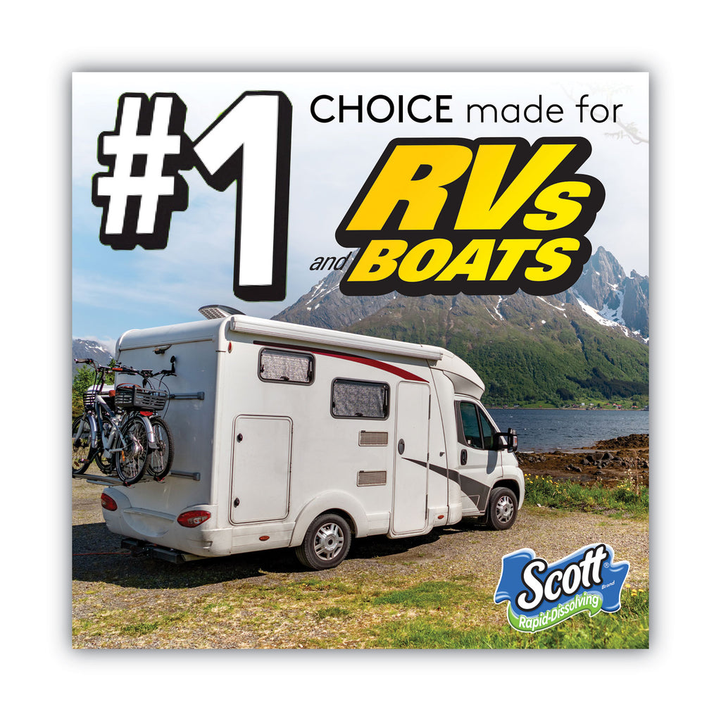 Scott® Rapid-Dissolving Toilet Paper is specially made for use in RVs, boats, buses and similar applications. Our rapid dissolving bath tissue breaks down four times faster than the leading brand. Scott® Rapid-Dissolving toilet paper is Clog Clinic tested and approved to be septic-safe and sewer-safe. Plus, it's soft, absorbent and gentle on skin. When you're ready to hit the road, take the TP you can trust to help protect your plumbing — Scott® Rapid-Dissolving bath tissue.
