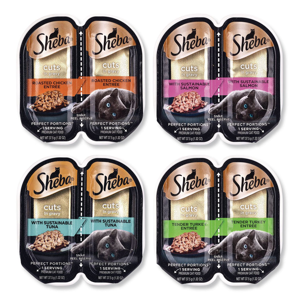 Your cat knows what they want, and what they want is the delicious taste of Sheba®. Treat your feline to an elegant meal of Sheba® Perfect Portions Wet Cat Food, crafted in irresistible flavors inspired by your own favorite culinary delights. This soft wet cat food variety pack features delicious recipes with a delectable, light texture your cat will devour. Sheba® Perfect Portions offer two convenient servings in right-sized trays for a delicious meal every time. Show your cat some love; this grain free soft wet cat food is sure to satisfy even the pickiest appetite. Savor every delicious moment with Sheba® Wet Cat Food: What Cats Want.