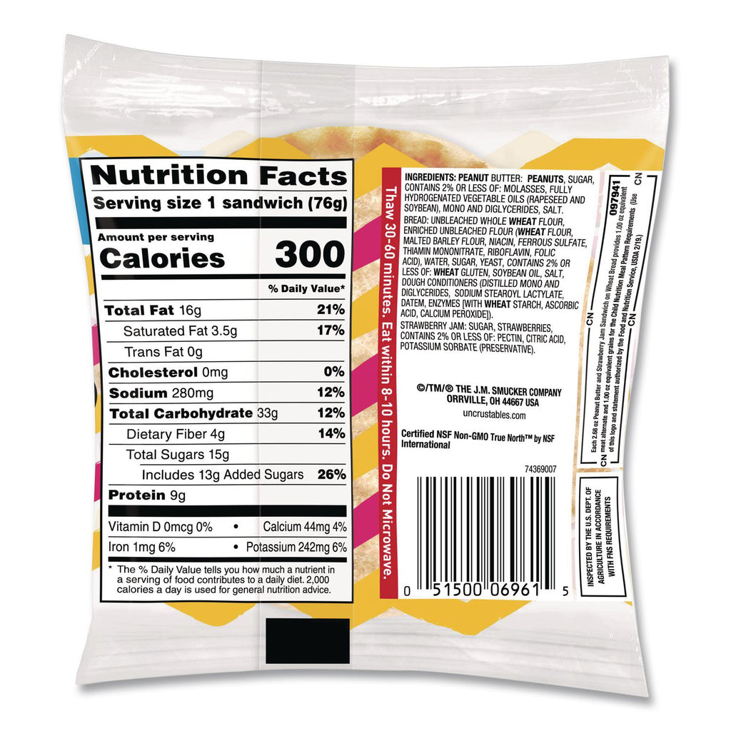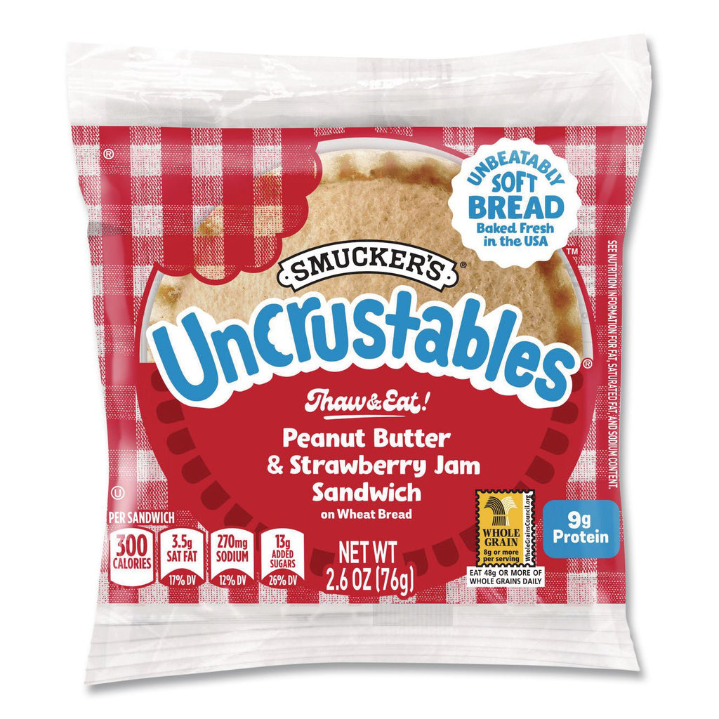 Smucker's® UNCRUSTABLES Peanut Butter and Strawberry Jam on Wheat Bread, 2.6 oz Bag, 48/Carton (GRR22002220) Case of 48