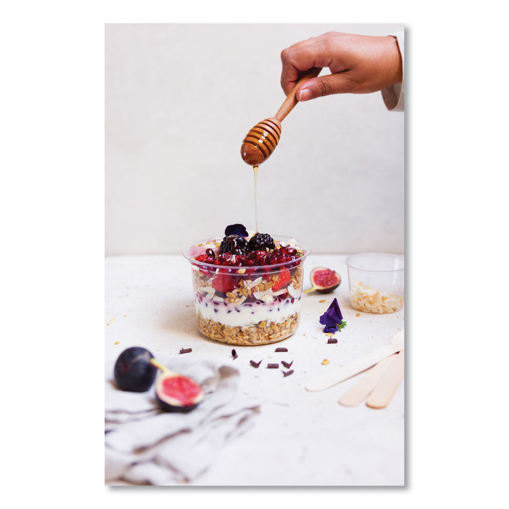 Versatile round deli container. One flat lid fits all sizes, for a great seal and easy stacking. A small portion of cold deli counter treats, cold snacks, or a delicious yogurt dessert. Made from PLA, a renewable material made from plants. Clear for visibility. Award-winning quality by Vegware™, made from plants. Commercially compostable where accepted.