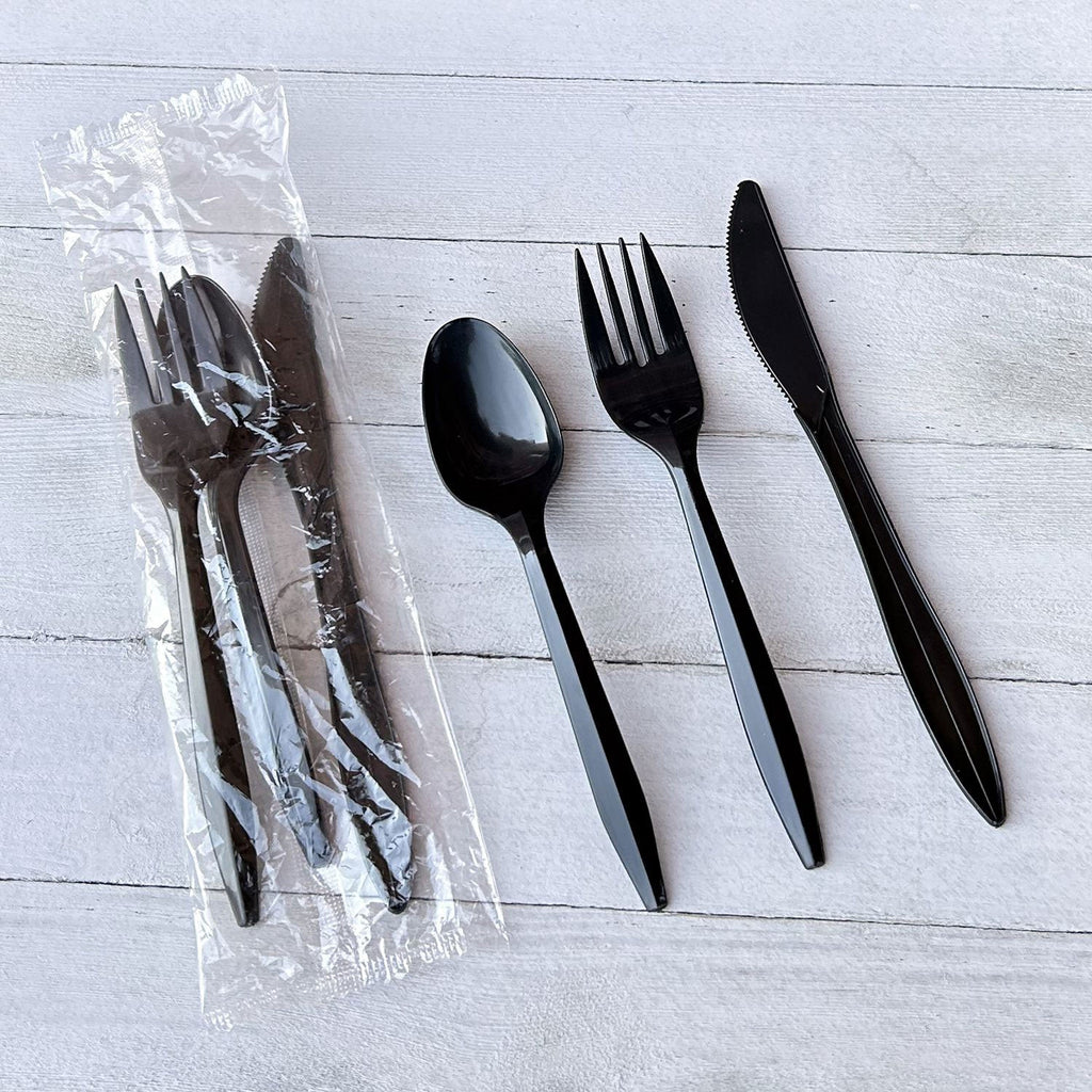 Boardwalk Three-Piece Cutlery Kit, Fork/Knife/Teaspoon, Polypropylene, Black, 250/Carton (BWK3KITBLPP) Case of 250
