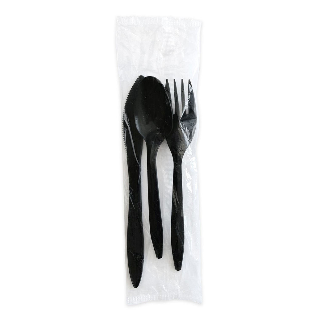 Boardwalk Three-Piece Cutlery Kit, Fork/Knife/Teaspoon, Polystyrene, Black, 250/Carton (BWK3KITBLPS) Case of 250
