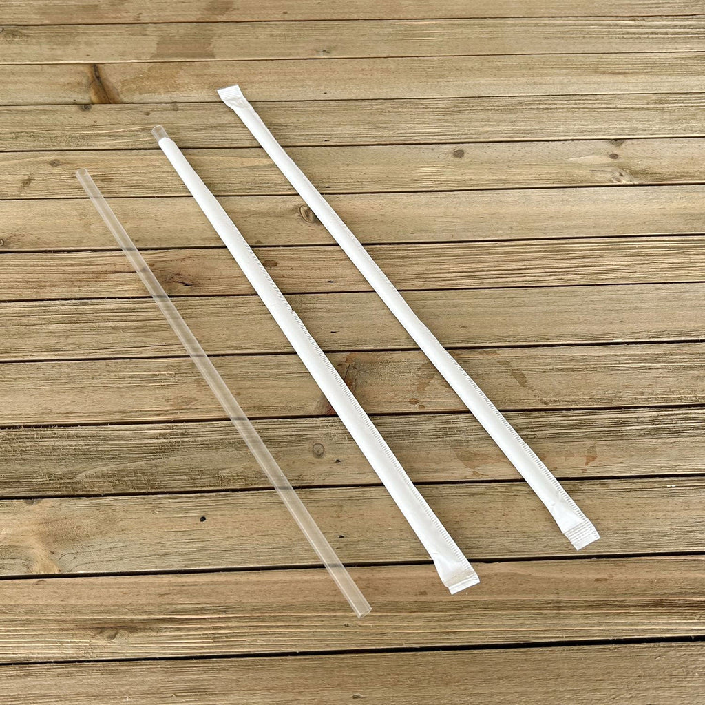 Individually wrapped, plastic, straws offer function and convenience for on-the-go drinks. High-quality material provides strength while also maintaining flexibility. Ideal for sipping cold liquids like soda, juice, milk, and iced coffee. The jumbo straws are perfect for offices, schools, restaurants, and events. Each straw is wrapped in paper to ensure the straw remains sanitary, even after handling.