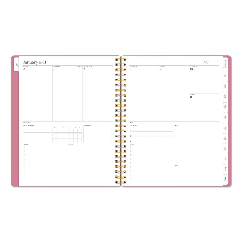 While you navigate your goals, reach for a planner fit for a modern professional's endeavors, and express your style with bold, stylish colors and chic, gilded-gold accents. The WorkStyle Weekly/Monthly Planner is perfect for tracking your weekly and monthly plans throughout the year. Weekly spreads feature an open-scheduling format and separate sections to accommodate your weekly priorities and tasks. Monthly spreads feature large daily blocks and separate notes areas for each week's details. The monthly section's tabs also ensure easy navigation from one month to the next. Bonus sections for future planning, general notetaking and more help expand your planning potential. A durable poly cover and polished-metal twin-wire binding keep everything together.