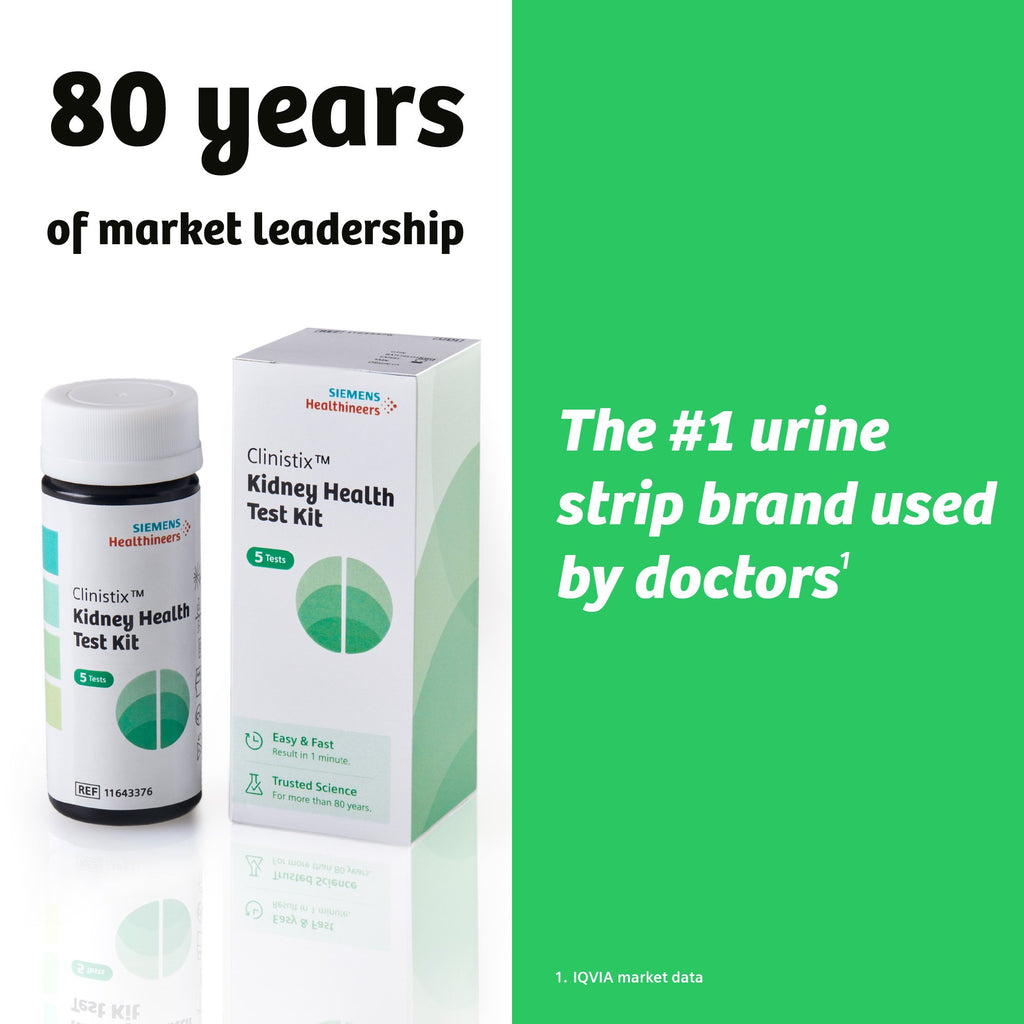 • Trusted science: With over 80 years in urinalysis, Siemens Healthineers presents Clinistix test strips, which use the same proven dry reagent chemistry found in professional medical settings.
