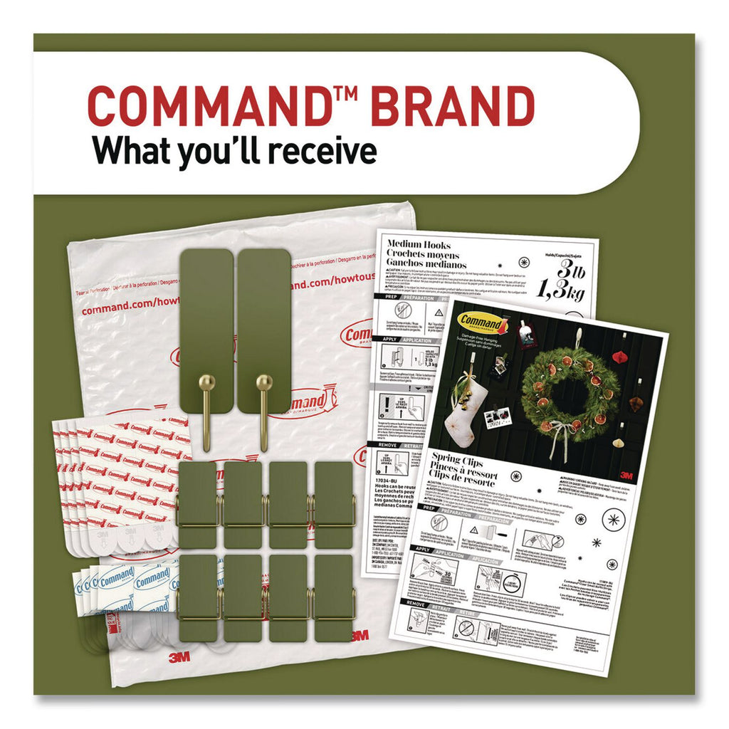Command™ Limited Edition Decorative Hook Variety Pack, (8) Mini Spring Hooks, (2) Medium Hooks (Supports 3lb), Sage Green/Brass, 10/PK (MMMSGMHP10ESF) Pack of 10