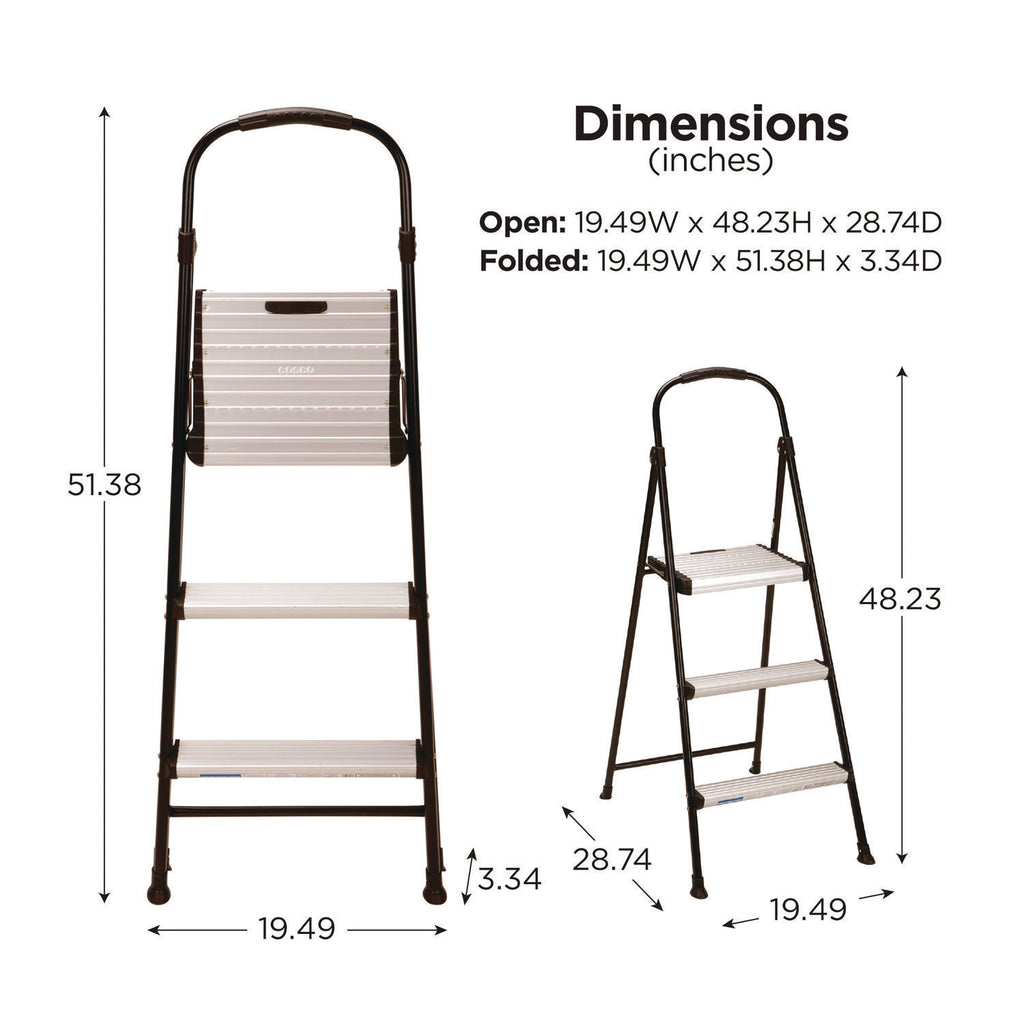 Cosco® 3-Step Stepstool, 250 lb, 28.75" Tall, 28.35" Spread, Black/Silver (CSC11425ABK1E) Each