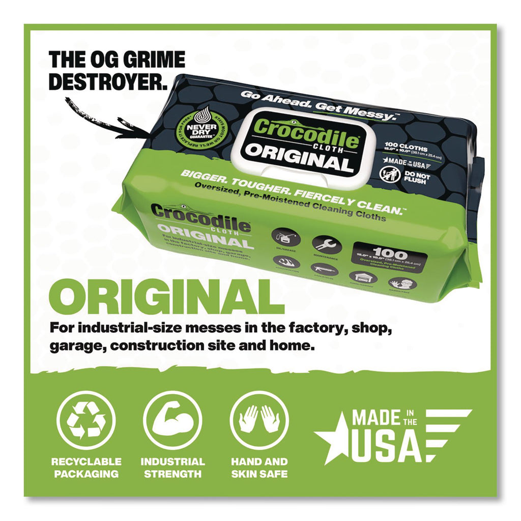 Designed to dissolve and absorb grease, grime, oil, paint, caulk, glue, and automotive messes in real work environments. Great on plastic, vinyl, metal, wood, leather, gym equipment, carpets, bamboo, fabrics and more. Our giant 10? x 15? cleaning wipes are designed to scrub and absorb, meaning you need less wipes to clean the same mess. Our wipes stay moist longer and feature a super tough heavy-duty build. Tackle any mess, any size, on any surface! These heavy-duty disposable cloth wipes feature unrivaled tensile strength and use a unique low-foaming degreaser formula that's safe for nearly any and every surface. This is the only disposable cleaning wipe you need for tough jobs in the shop, factory, garage or home.